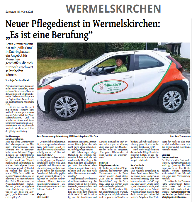 Telefon: 02193 7469940 Mail: info@pflegedienst-villa-cura.de Bürozeiten: Montag bis Freitag von 9.00 Uhr bis 14.00 Uhr